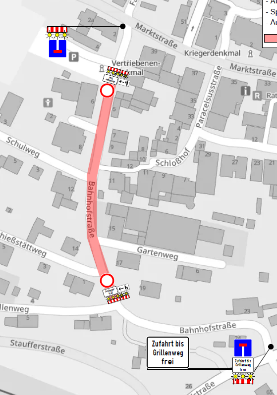 Aufgrund von Bauarbeiten wird die Bahnhofstraße bis längstens 15.09.2025 gesperrt.