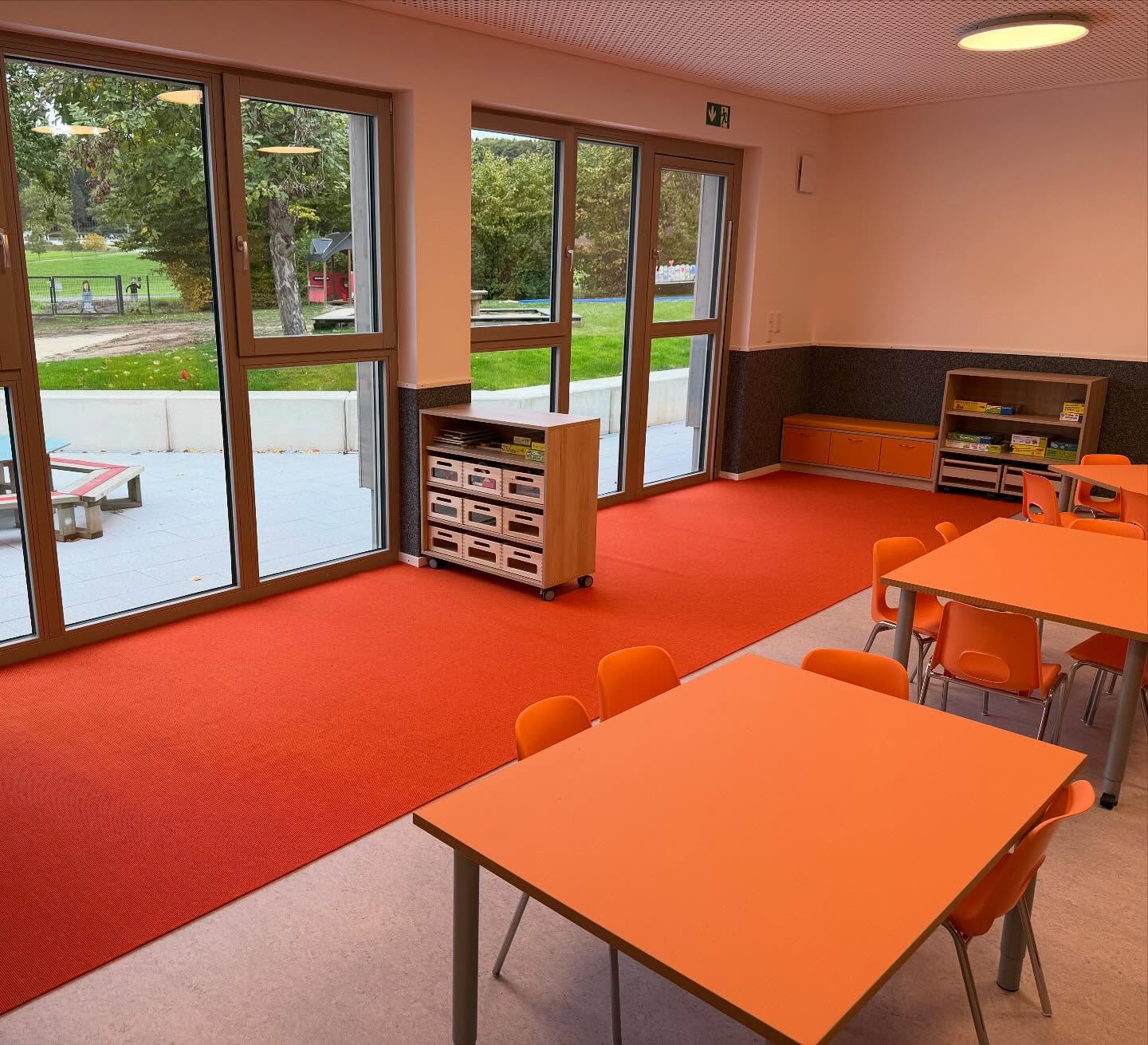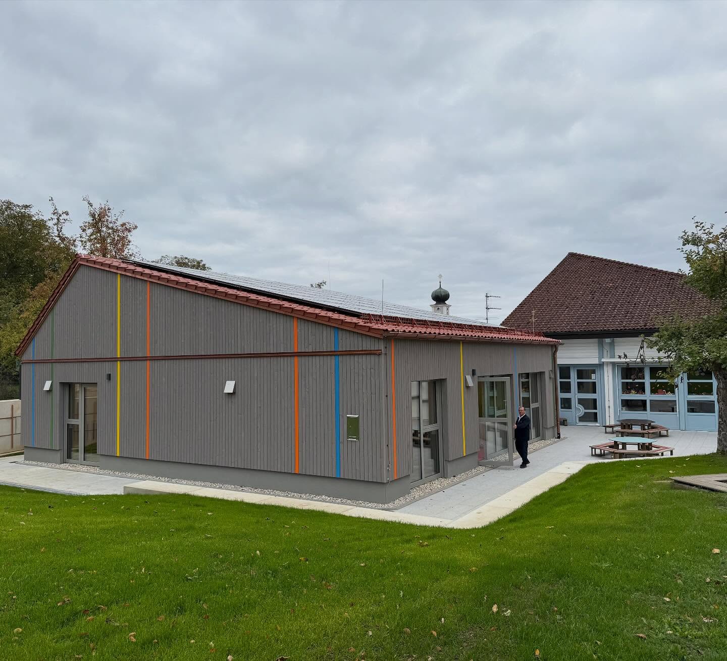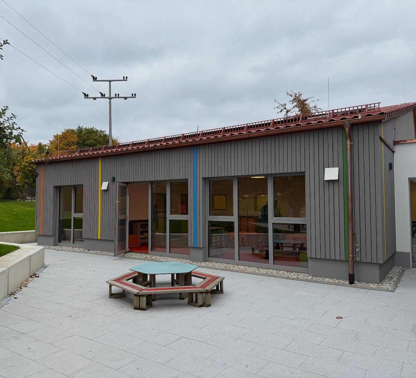 Durch den Anbau kann die Einrichtung künftig zwei Gruppen aufnehmen. Gleichzeitig wurde in moderne und nachhaltige Gebäudetechnik investiert: Das Gebäude wurde in Holzbauweise errichtet und mit einer Wärmepumpe sowie einer Photovoltaikanlage ausgestattet. Außerdem wird künftig ein warmes Mittagessen angeboten, und auch Kinder unter drei Jahren (U3) können betreut werden.