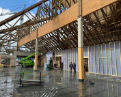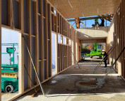 Infos zur Baustelle "Kinderhaus Farbenzauber" Beim Kinderhaus Farbenzauber bietet sich derzeit ein etwas "wildes Bild": Der Dachstuhl im hinteren