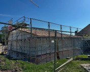 Großer Baufortschritt des Kindergartens Oberpfraundorf Hier wird von einer auf zwei Gruppen aufgstockt. Bauherr und Träger ist die Kirchengemeinde