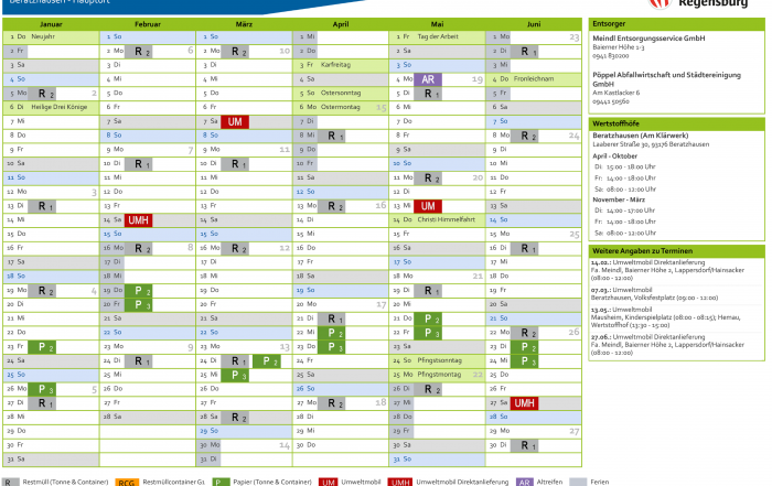 Entsorgungskalender 2026 Der Entsorgungskalender für das Jahr 2026 ist ab sofort online verfügbar. Alle Abfuhrtermine können auf der Homepage des Landkreises Regensburg unter