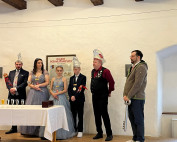 Die zwei Prinzenpaare mit Präsident Christian Eglmeier stürmten am Faschingsfreitag das Rathaus und nahmen Bürgermeister Matthias Beer die Schlüssel ab.