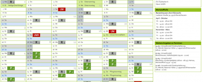 Hinweis zum Entsorgungskalender